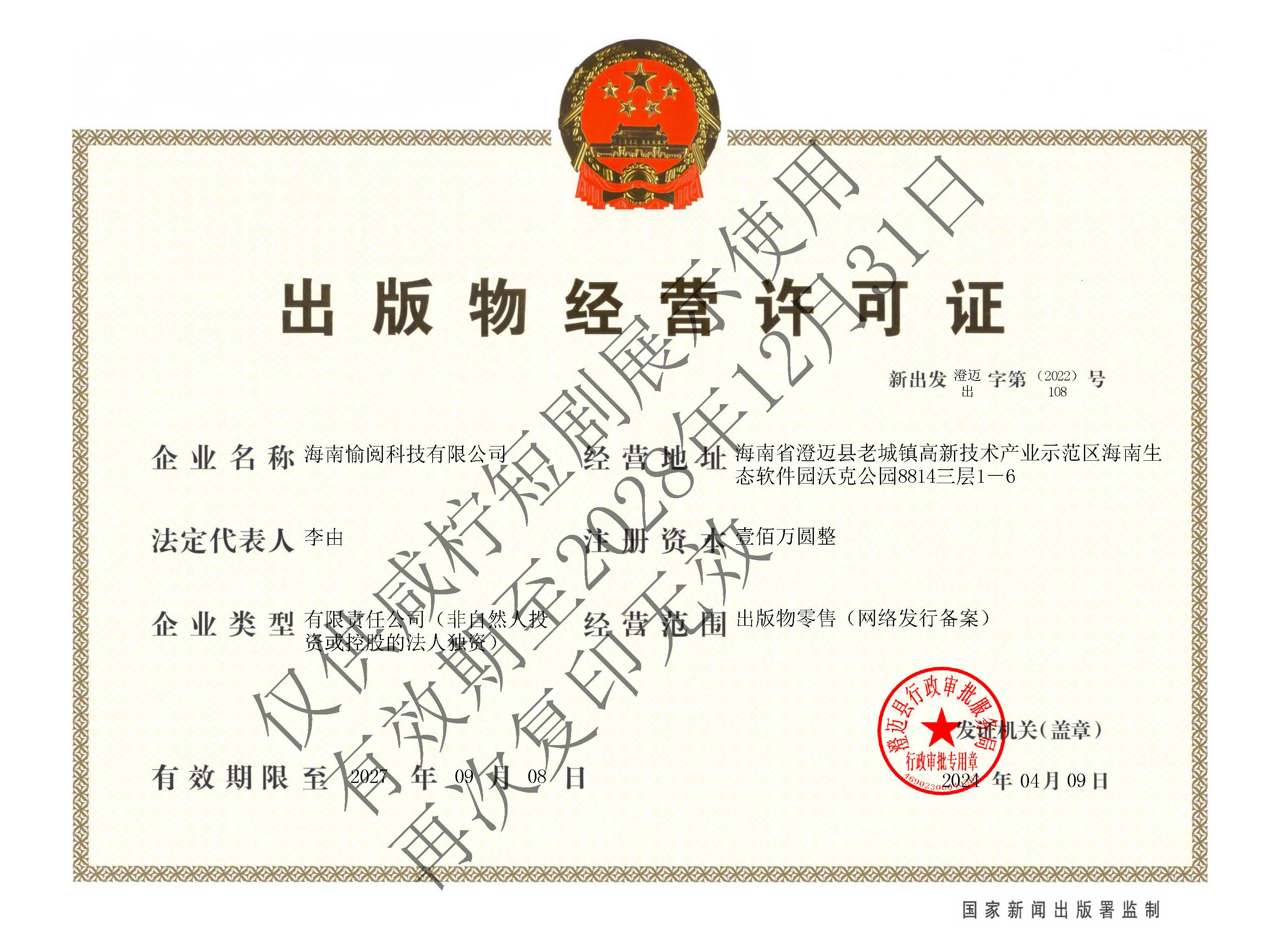 营业执照 | 出版物经营许可证 | 广播电视节目制作经营许可证